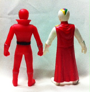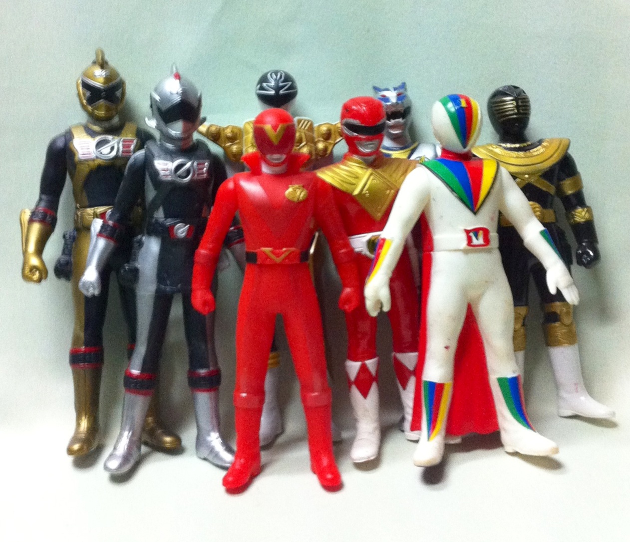 『レッドファイター (トリプルファイター)』(ブルマァク)、『ペガサス (バンキッド)』(タカトク)、『ジュピター (サイバーコップ)』(TAKARA)、 『火忍 (忍者キャプター)』(ポピー)、『流れ星 (宇宙からのメッセージ銀河大戦)』(ポピー) 、こいつらも戦隊としてミニソフビ 並べてある。