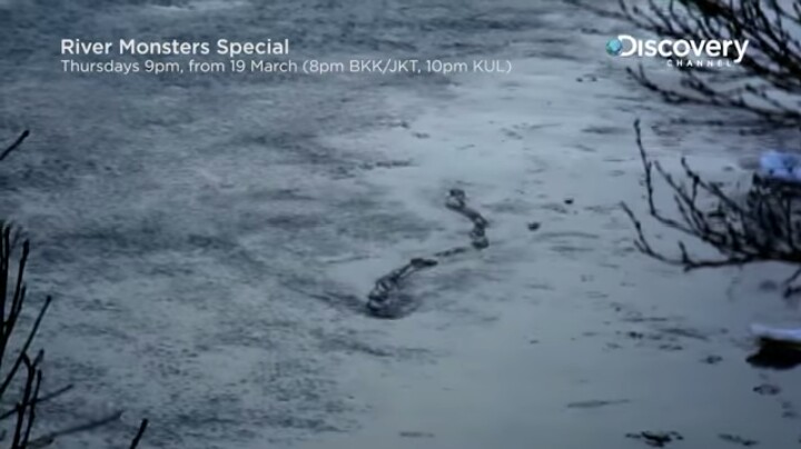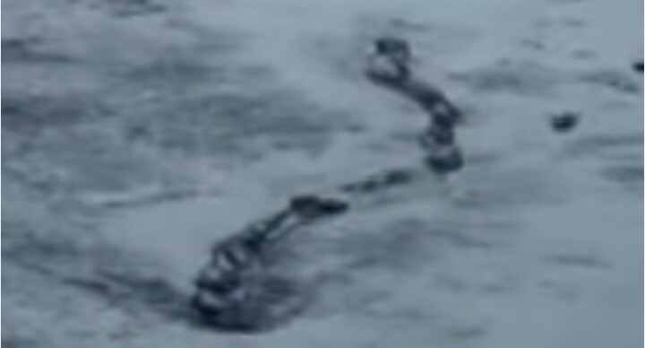 YouTubeで観る限り、何かヘビの様なものが、凍った水面をくねって進む姿が確認できる。