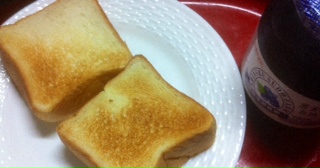 パンに、ブルーベリージャム、いっときました。甘いのならやっぱ食する気になる。