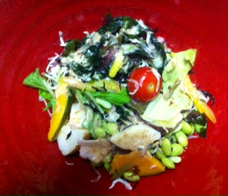 ということで、またまた色々サラダ〜!!胡麻ドレと出汁醤油で味付けね!!