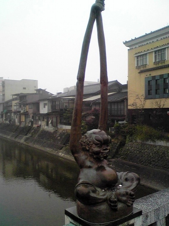 岐阜県高山市にある妖怪「手長足長」像 ※http://64987200.at.webry.info/200912/article_2.html