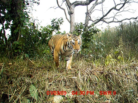 ネパール国立公園・野生生物保護局によると、1995〜1996年に国内3カ所の独立した個体群で行われた調査では、95頭の繁殖期のトラを確認していた。