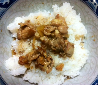 お母の玉ねぎを、豚肉と炒めてそれをかけました。
