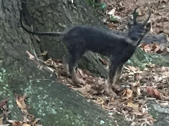 ¡ÆI believe two things in this world to be true, that Jesus Christ is my savior and that the Ozark Howler is real and living in the Arkansas mountains.¡Ç(¡Ø»ä¤Ï¡¢¤³¤ÎÀ¤¤Î2¤Ä¤Î¤â¤Î¤¬¿¿¼Â¤Ç¤¢¤ë¤È»×¤Ã¤Æ¤¤¤Þ¤¹¡¢¥¤¥¨¥¹¡¦¥¥ê¥¹¥È¤¬»ä¤ÎµßÀ¤¼ç¤Ç¤¢¤ë¡¢¤½¤·¤Æ¡¢Ž¢Ozark HowlerŽ£¤¬ËÜÅö¤Ç¡¢¥¢¡¼¥«¥ó¥½¡¼¤Î»³¤Ë½»¤ó¤Ç¤¤¤ë¡£¡Ù)¡ÈThis ¡Ædog of death¡Ç is known for its coal black fur coat, curved, goat-like horns, and its howl, which has been described as one part wolf¡Çs howl and one part elk¡Çs bugle. Like the various black dogs of British folklore, the Ozark Howler may be something of a omen – a type of spirit warning travelers of their impending doom.¡É(¤³¤Î¡Ø»à¤Î¸¤¡Ù¤Ï¡¢¤½¤Î¥³¡¼¥é¥ë¡¦¥Ö¥é¥Ã¥¯(coal black¡¢¿¿¤Ã¹õ)¤ÎÌÓÈé¤Î¥³¡¼¥È¡¢¥ä¥®¤Î¤è¤¦¤ÊÏѶʤ·¤¿³Ñ¤È¡¢¤½¤Î±ó¤Ü¤¨¤ÇÃΤé¤ì¤Æ¤¤¤Þ¤¹¡£¤½¤ì¤Ï¡¢°ìÉôʬ¤Ïϵ¤Î±óËʤ¨¤È¤·¤Æ¡¢°ìÉôʬ¤Ï¥Ø¥é¥¸¥«¤Î·³Ââ¥é¥Ã¥Ñ¡¢¥Ó¥å¡¼¥°¥ë(bugle)¤È¤·¤ÆµºÜ¤µ¤ì¤Æ¤¤¤ë¡£±Ñ¹ñ¤Î̱´ÖÅÁ¾µ¤ÎÍÍ¡¹¤Ê¹õ¸¤¤Î¤è¤¦¤Ë¡¢¥ª¥¶¡¼¥¯¥Ï¥¦¥é¡¼¤ÏÃû¤·¤Î¤è¤¦¤Ê¤â¤Î¡¢¤È¤È¤é¤¨¤ë¤³¤È¤¬¤Ç¤¤ë¡£Î¹¹Ô¼Ô¤Ë¡¢Èà¤é¤ÎÀÚÇ÷¤·¤¿ÇËÌÇ¡¢»à¤Ë¤Ä¤¤¤Æ·Ù¹ð¤¹¤ë°ì¼ï¤ÎÎî¡£¢¨SOURCE