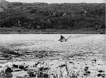 LNIB member Ivor Newby checking nets in Lough Nahooin. A creature had been seen in the reeds in the background on the left. (ナフーイン(Nahooin)湖で、網をチェックしているLNIBメンバー。アイバー・ニュービー。クリーチャーは、左の背景の葦に見られました。)